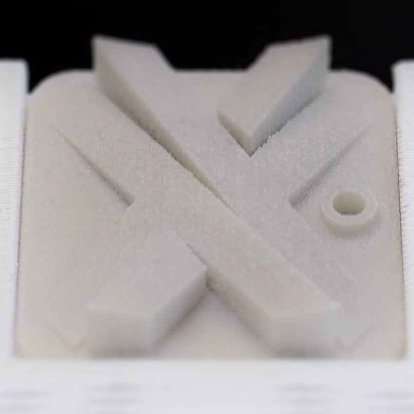This is a whitish polyamide 12 powder that is glass filled. Its stiffness is excellent and it has good elongation at break. It produces highly smooth parts with excellent mechanical properties and accuracy.